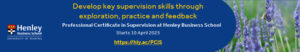 The Professional Certificate in Supervision is a programme where you learn by doing. You will engage in reflective practice throughout. You will be required to undertake coaching supervision during the course, and reflect on your learning. This will be supported by core content which will incorporate key supervision models and frameworks for working with individuals and groups. The approach adopted is one of an adult learning community and we aim to create a psychologically safe learning space where we can all learn together.